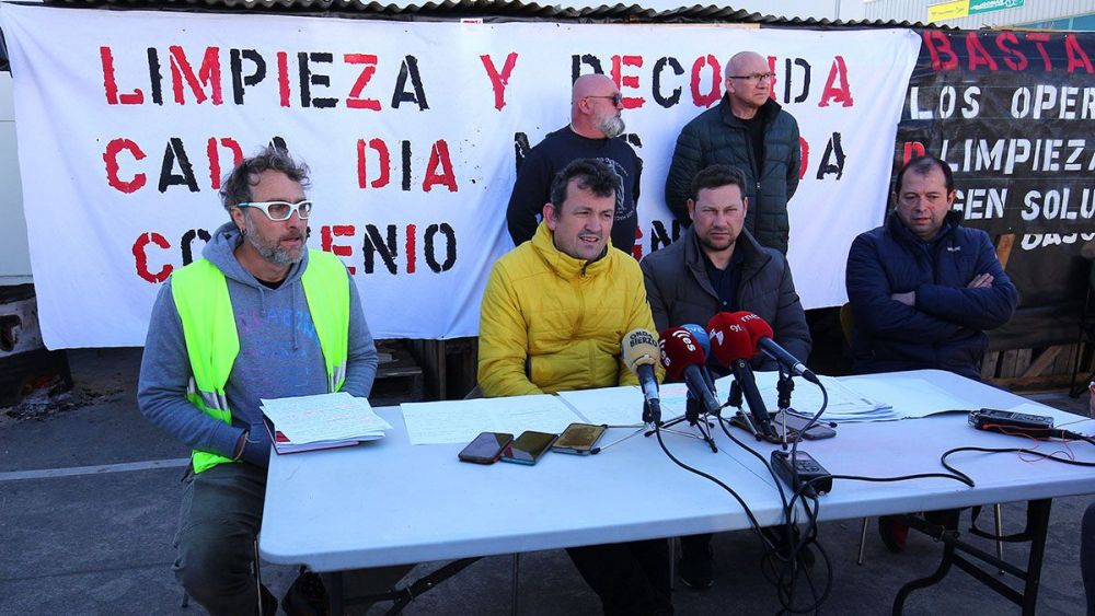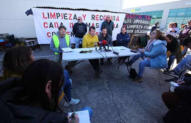 Rueda de prensa del comité de huelga de la empresa concesionaria del servicio de limpieza viaria y recogida de basuras de Ponferrada, FCC Medioambiente SAU, para aclarar todas las cuestiones relacionadas con la huelga indefinida iniciada el lunesAl respecto, tanto Gómez como el secretario del comité, David Lago, recordaron que este pliego establece que la adjudicataria no podrá minorar unilateralmente las condiciones laborales y económicas de los trabajadores durante toda la vigencia del contrato. “La empresa pretende sacar beneficio del sueldo de los trabajadores”, señaló Lago, que recordó que la plantilla lleva desde el año 2011 sin ver incrementado su salario.