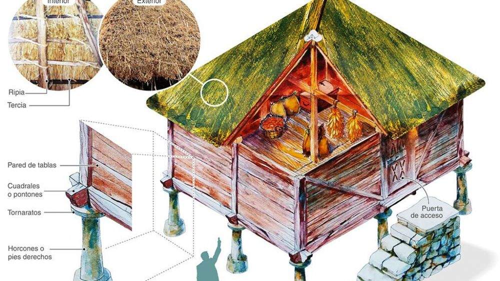 La palabra en sí proviene del latín y significa 'granero'. Los hórreos se caracterizan por ser espacios oscuros y fríos pero con una buena ventilación. Estas construcciones suponían gran parte del sustento doméstico debido a la importancia de la agricultura y la ganadería en aquellos tiempos.