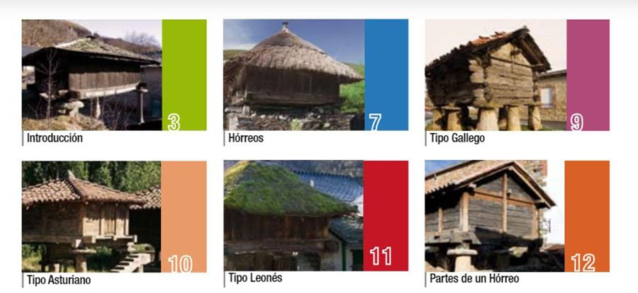 Existen varios tipos de hórreos: el rectangular, más típico de la zona de Galicia; el cuadrado, conocido como el asturiano; el cántabro o mixto —que curiosamente abundan más en la provincia de León que en Cantabria— y hórreos circulares.