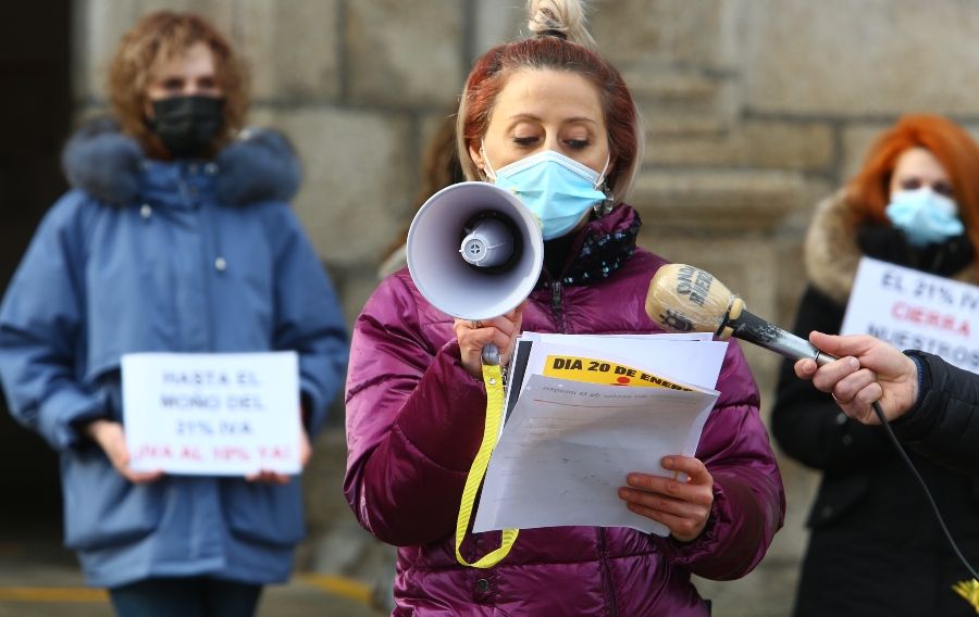 Denuncian que llevan 8 años pagando un exceso en el IVA y reclaman que les den lo que les "pertenece". "El 27 de noviembre del 2017 PSOE presenta una PNL para devolvernos nuestro IVA reducido apoyado por Unidas Podemos, PNV y ERC, y aprobada en 2018. Entonces eran los partidos de la oposición. Curiosamente esos partidos son los que ahora gobiernan. Y no solamente no aplican lo que aprobaron sino que, hace unos días VOTARON NO a una PNL que pedía exactamente lo mismo y que fue presentada por VOX", añadía la portavoz en la Plaza del Ayuntamiento de Ponferrada.