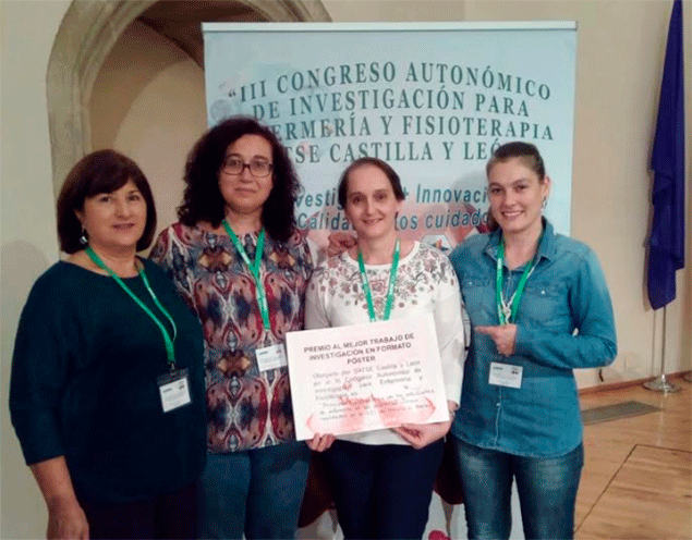 Además, un grupo de enfermeras de la UCI fueron premiadas por el mejor trabajo de investigación en formato póster en el III Congreso Autonómico de Investigación para Enfermería y Fisioterapia celebrado en Soria los pasados 24 y 25 de octubre. El póster ganador llevaba por título 'Principales estresores de los estudiantes de enfermería en las prácticas clínicas realizadas en la UCI del Hospital El Bierzo'- El objeto del estudio era observar y analizar las principales fuentes de estrés de los alumnos de 4º curso de Enfermería durante sus prácticas en el Hospital.