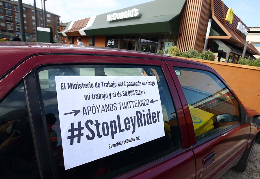 Convocados por el movimiento Repartidores Unidos y la Asociación Profesional de Riders Autónomos (APRA), los trabajadores que se encargan de repartir comida a domicilio o de hacer las compras en supermercados y farmacias reclamaron al Gobierno que se abra al diálogo con las asociaciones que representan al sector. “Queremos que la ministra se siente a hablar con nosotros”, apuntó León, que aseguró que la futura ley que regule la actividad en las plataformas digitales puede provocar la destrucción de 25.000 de los 35.000 puestos de trabajo que actualmente existen a nivel nacional, así como el cierre de negocios hosteleros que en el contexto actual subsisten a base del reparto de comida a domicilio.