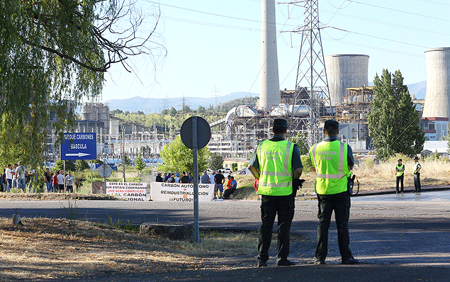 asturleonesa-4 Mineros de la Astur Leonesa cortan el acceso a la central de Compostilla en Cubillos del Sil / Fotos de César Sánchez / ICAL