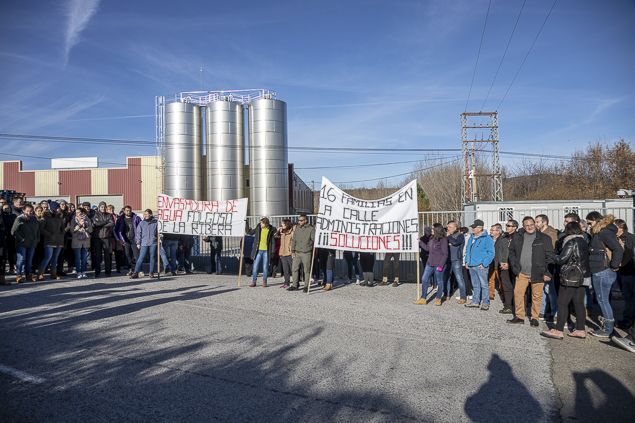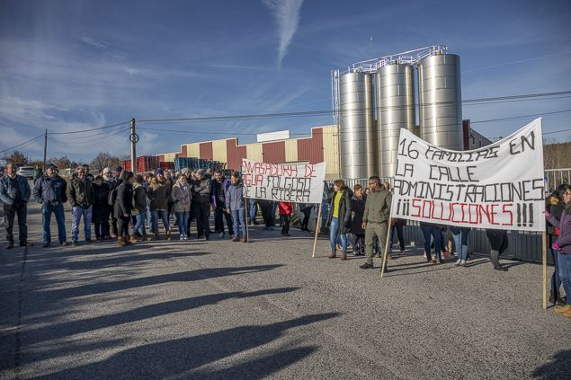 Los 16 empleados despedidos de la planta embotelladora de agua de la localidad berciana de La Ribera de Folgoso se han manifestado este lunes en las inmediaciones de la fábrica como protesta por el cierre “sin previo aviso” de la industria y el “despido improcedente” de toda la plantilla. "Nos han dado de baja de la Seguridad Social el pasado 8 de noviembre y tenemos tres nóminas pendientes", señala Mari Carmen González, representante de los trabajadores. "Nos encontramos a la espera de que el juez desbloquee la cuenta y venga un administrador sustituto para continuar con la actividad", apuntan.