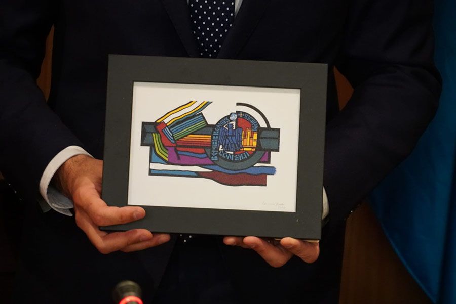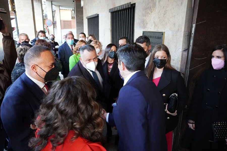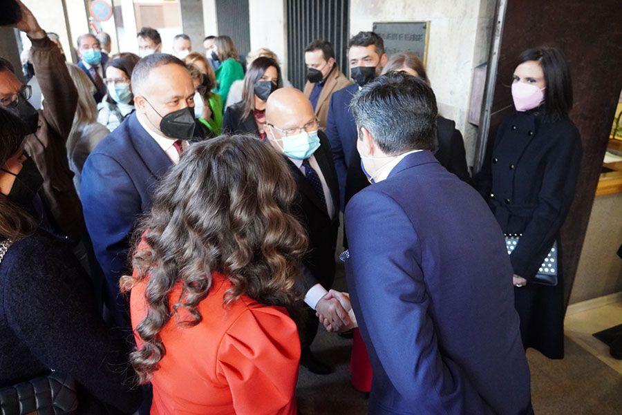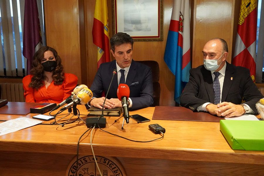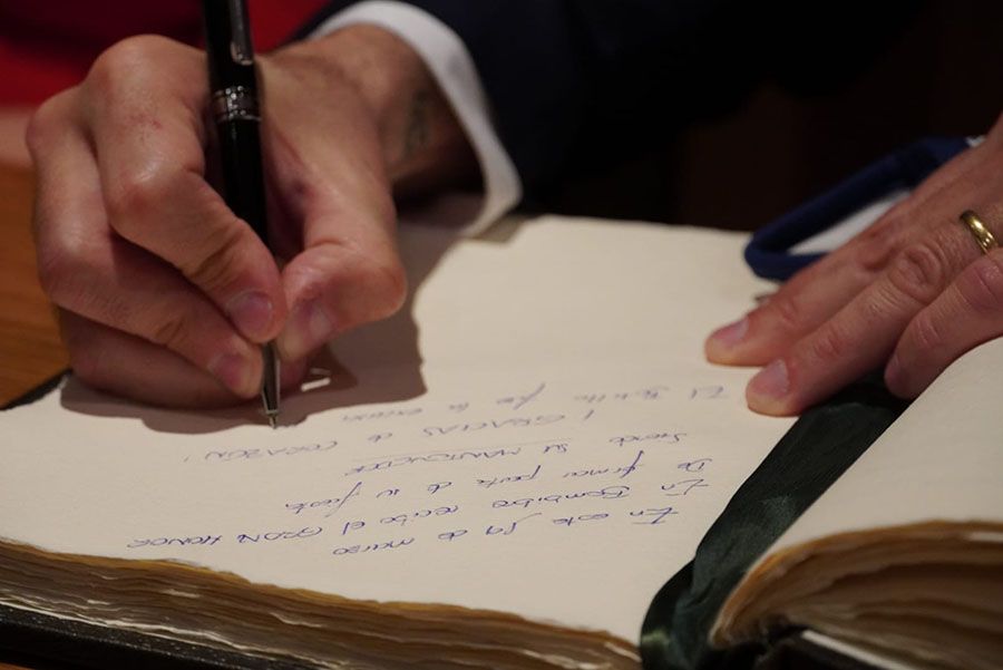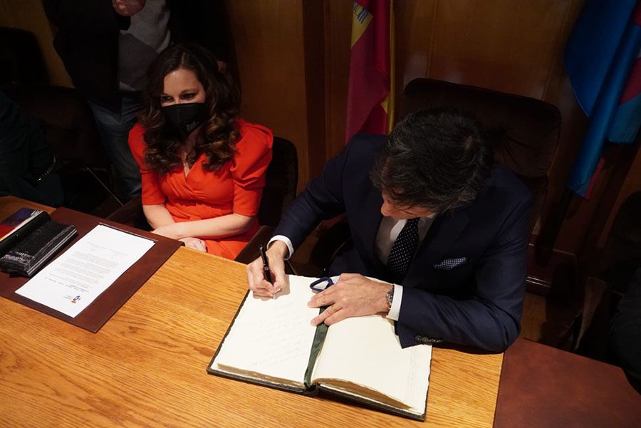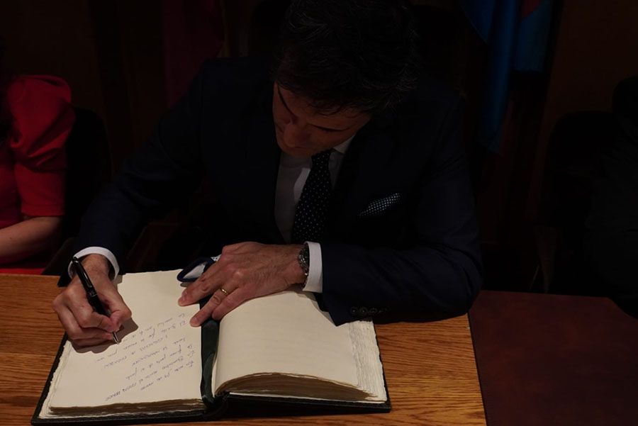 El locutor, actor, monologuista, presentador y mantenedor de la XLIX edición del Festival Nacional de Exaltación del Botillo, Luis Larrodera, ha plasmado su firma en el libro de honor de Bembibre en el acto previo a la gran gala y broche de oro de este fin de semana dedicado al embutido rey de la Comarca.