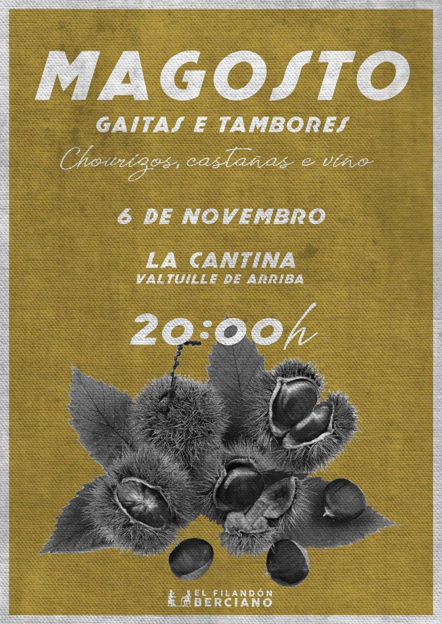 La Asociación Cultural El Filandón Berciano organiza un Magosto Popular con todos los ingredientes necesarios: castañas, chorizos, vino y música tradicional en directo. La cita será el próximo sábado 6 de noviembre en la Cantina de Valtuille de Arriba a partir de las 20:00h.