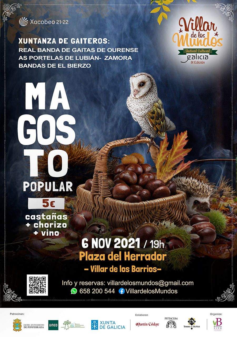 En el marco de la IX edición del festival Villar de los Mundos que este año tiene como protagonista a Galicia tendrá lugar un Gran Magosto al que se ha incorporado un encuentro musical muy especial. Tendrá lugar el sábado 6 de noviembre, a las 19 horas en la plaza del Herrador de Villar de los Barrios.