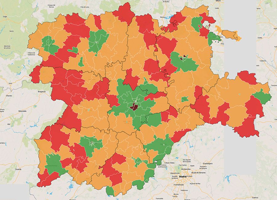 Estos datos, actualizados a 31 de octubre, forman parte del nuevo conjunto sobre la estructura del sistema de salud que la Consejería de Sanidad ha ‘subido’ a su portal, donde se puede realizar una visualización en un mapa de la Comunidad, similar al utilizado para informar de la incidencia del COVID-19 por zonas básicas de salud. En él, se fijan cuatro indicadores en función del número de tarjetas por médico de familia: menos de 40 (a reordenar para mantenimiento de capacidades); entre 400 y 800 (a reorganizar para equilibrio cargas asistenciales); entre 800 y 1.500, y más de 1.500 (a reforzar para amortiguar cargas excesivas).
