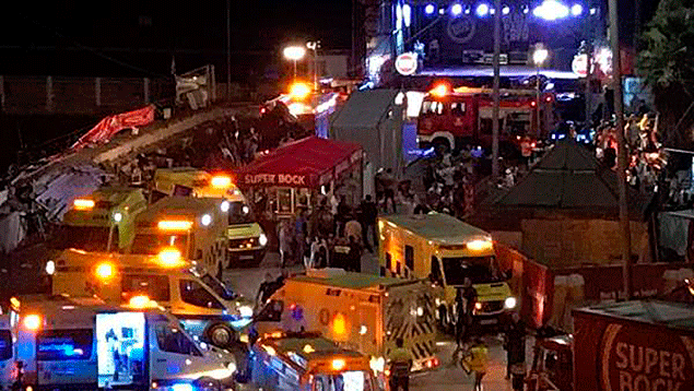 Escenas de pánico y tensión en Vigo. El derrumbe de una plataforma en la zona portuaria de la ciudad la noche de este domingo, donde estos días se celebra el festival de deporte y música urbana O Marisquiño, ha causado ya 312 heridos, según han informado fuentes de la Policía Nacional.