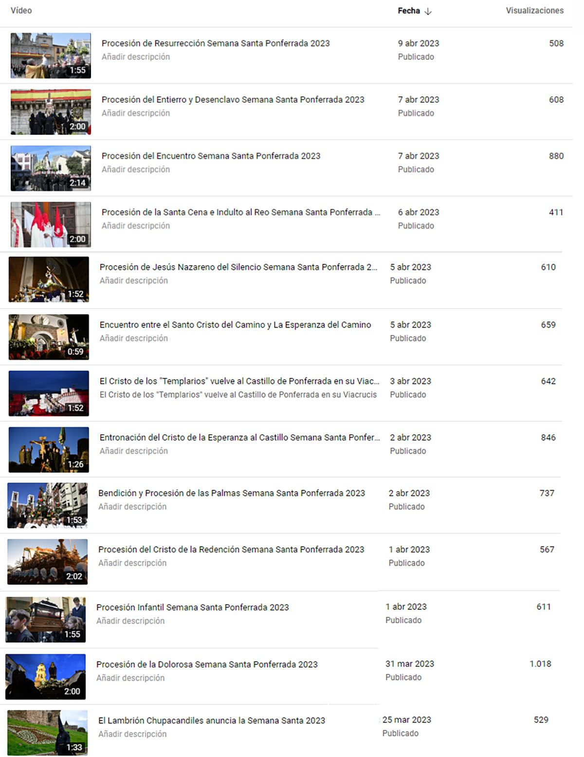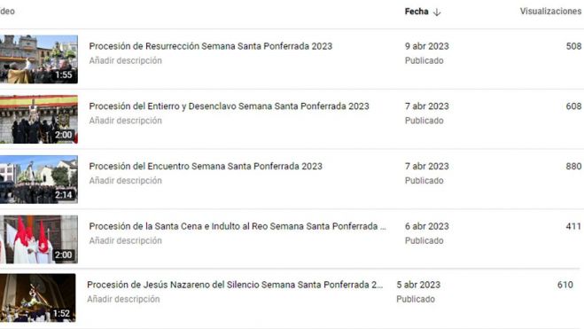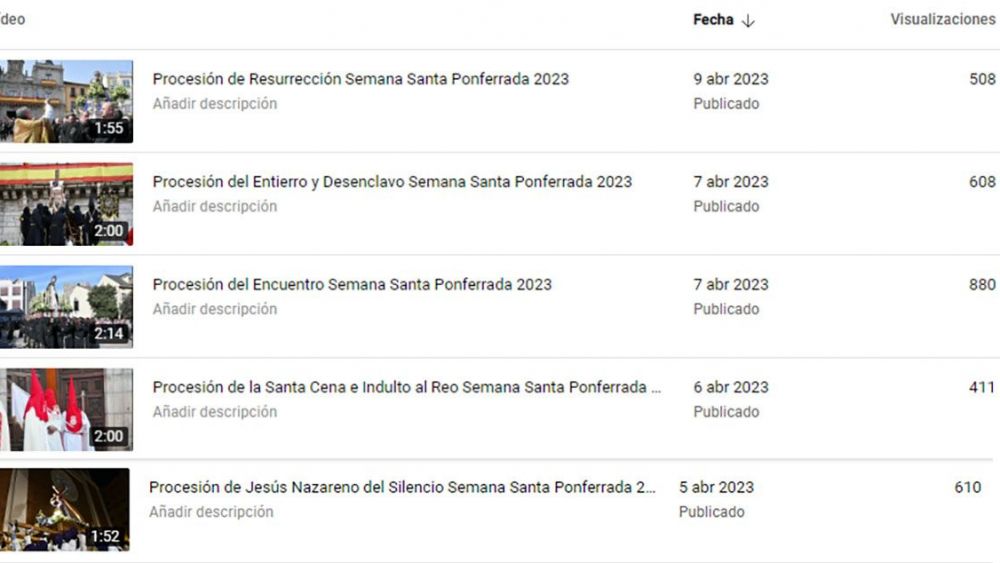 Los vídeos de las distintas procesiones, incluidas en las noticias sobre las mismas, han superado las 8.000 reproducciones en sólo una semana de publicación.
