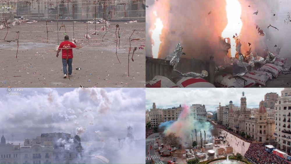 Además de la mascletà del mediodía, la programación fallera de esta jornada contempla otro espectáculo pirotécnico en el mismo escenario.