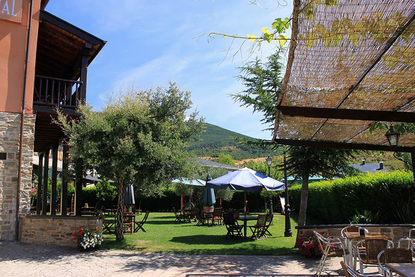 Un jardín enorme, con entretenimiento para los niños. Mesas bien repartidas, césped refrescante y la terraza interior es de exquisito cuidado. Sirven con gran profesionalidad y buen pincho. Y por supuesto, puedes comer y cenar en una de las mejores referencias gastronómicas del Bierzo.