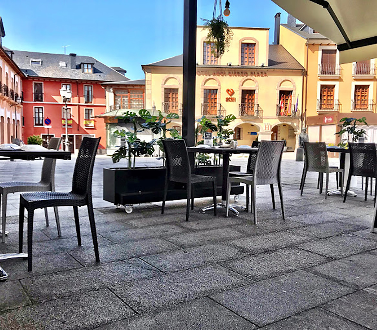 Situado en la monumental plaza Mayor de Villafranca del Bierzo. Emplazamiento de reposo al peregrino en la ‘pequeña compostela’. La terraza del Casino ha modernizado la propuesta hostelera y dentro los grandes barriles de cerveza dentro también animan a un trago refrescante. Además disponen de asientos en la plaza porticada.