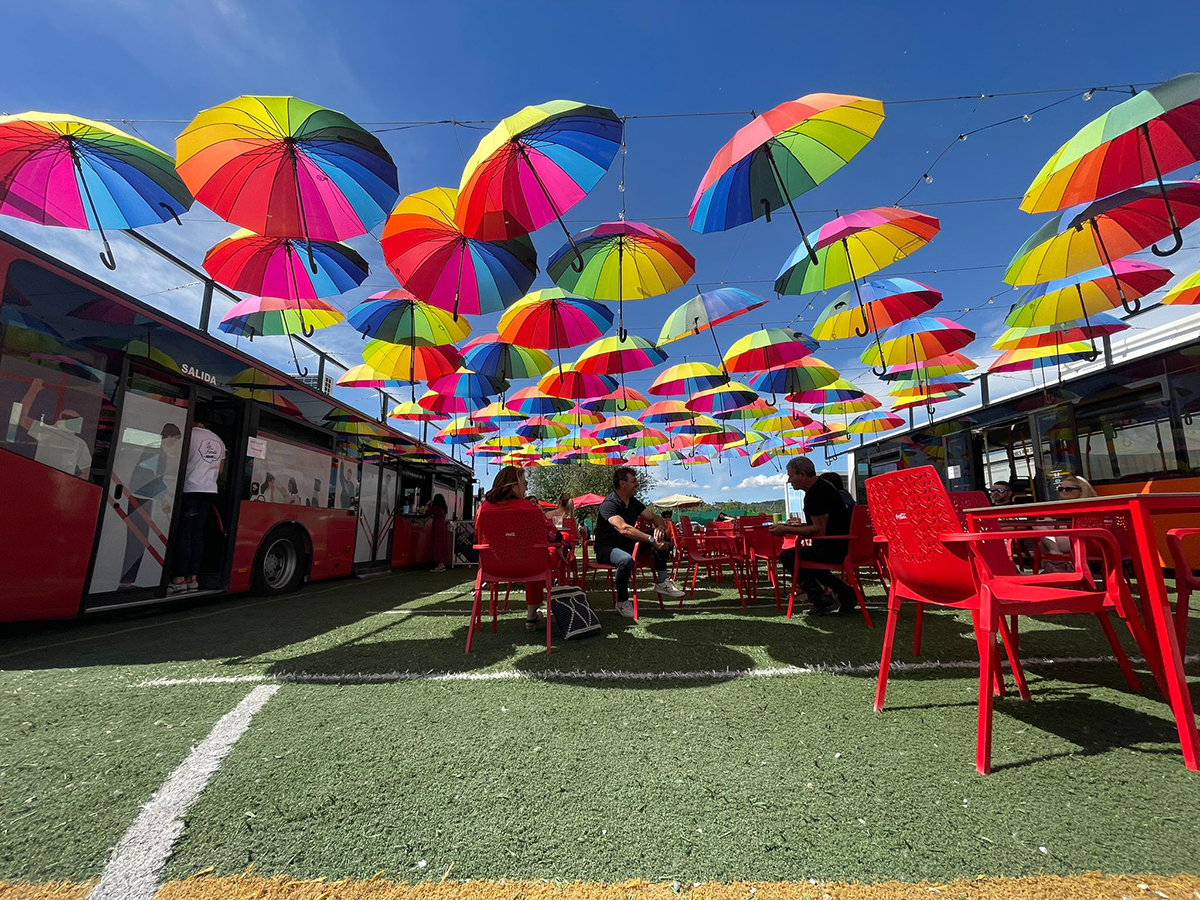 La finca food bus es un espacio de ocio y gastronomía, ubicado en Magaz de Abajo. Se trata de un autobús urbano, que deja a un lado la función con la que fue diseñado para ser un espacio de comida y disfrute acompañado por una terraza cubierta de paraguas que sirven, además de como sombrillas, como incentivo y atractivo visual.
