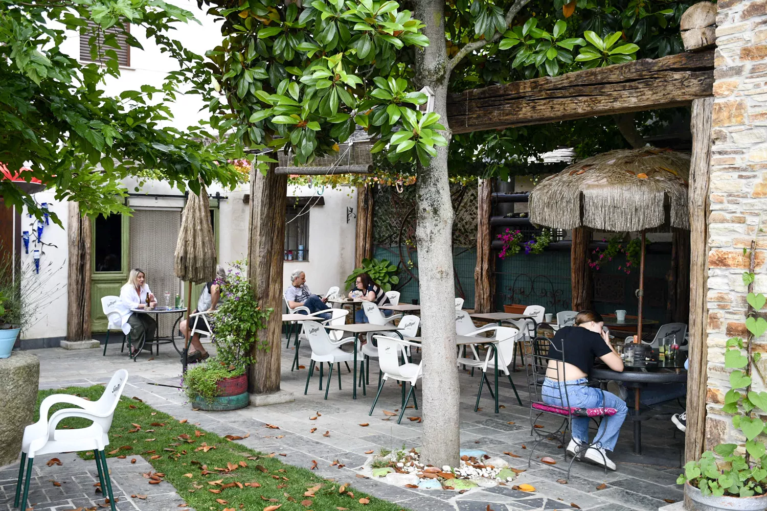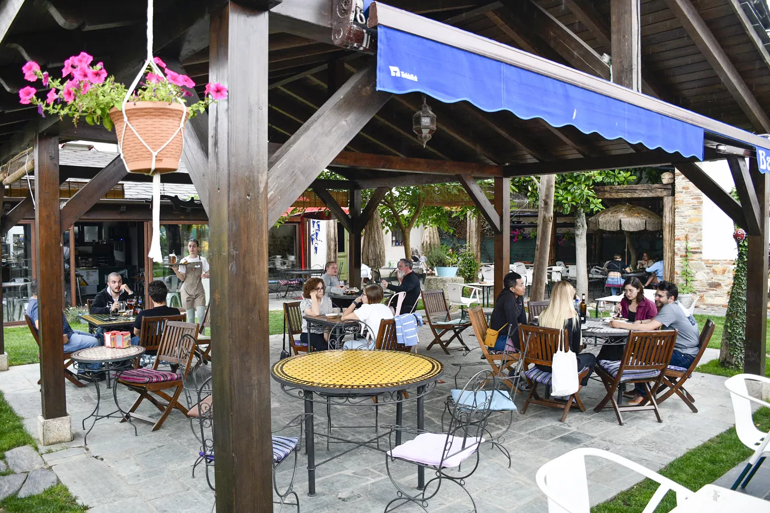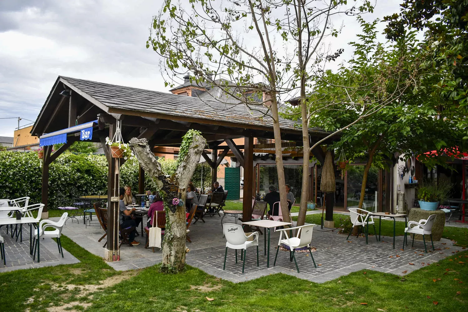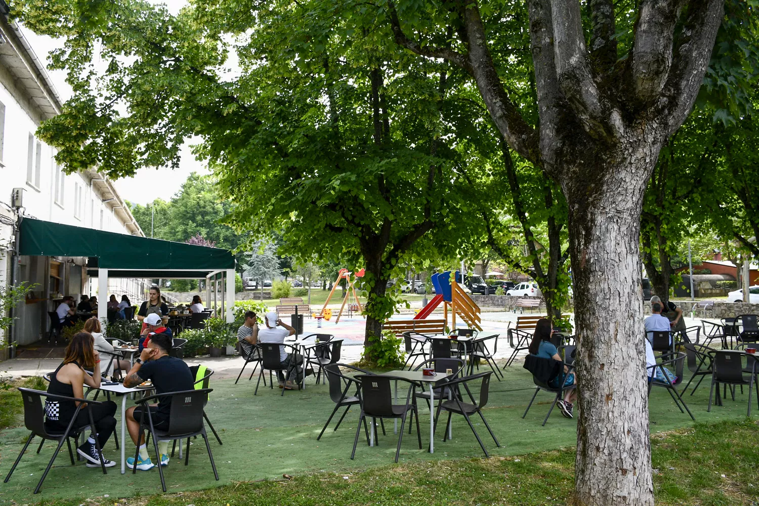 Un jardín enorme, con entretenimiento para los niños. Mesas bien repartidas, césped refrescante y la terraza interior es de exquisito cuidado. Sirven con gran profesionalidad y buen pincho. Y por supuesto, puedes comer y cenar en una de las mejores referencias gastronómicas del Bierzo.