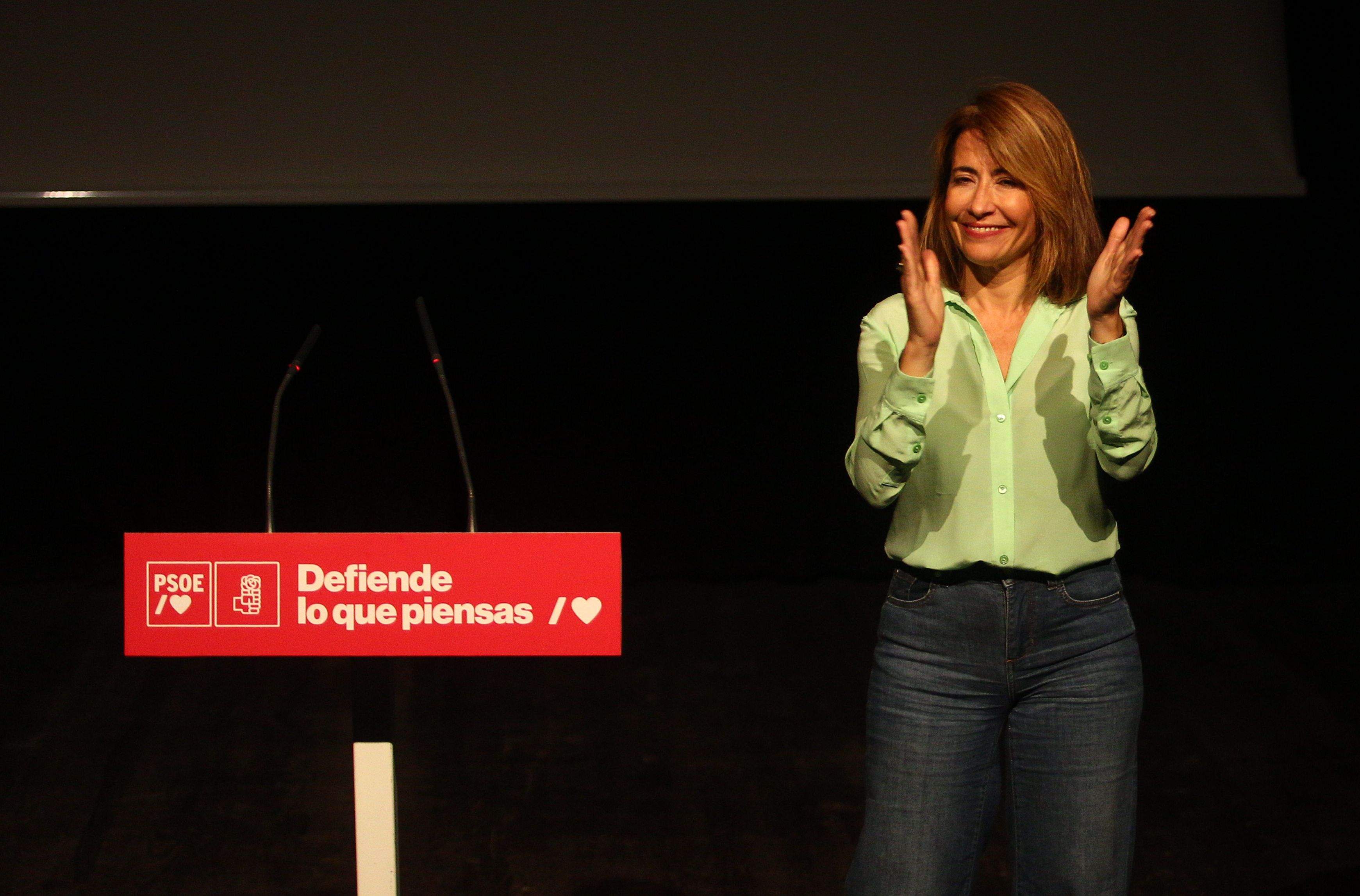 La ministra de Transportes, Movilidad y Agenda Urbana, Raquel Sánchez, durante la presentación en Bembibre (León), de las candidaturas del PSOE del Bierzo y Laciana
