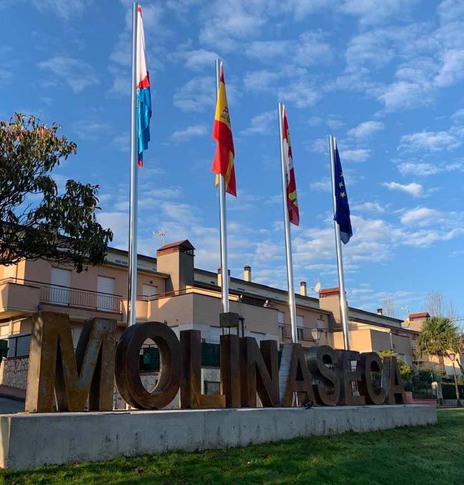 Desde este viernes, los visitantes de Molinaseca pueden ver a la entrada del municipio las letras acompañadas de banderas institucionales