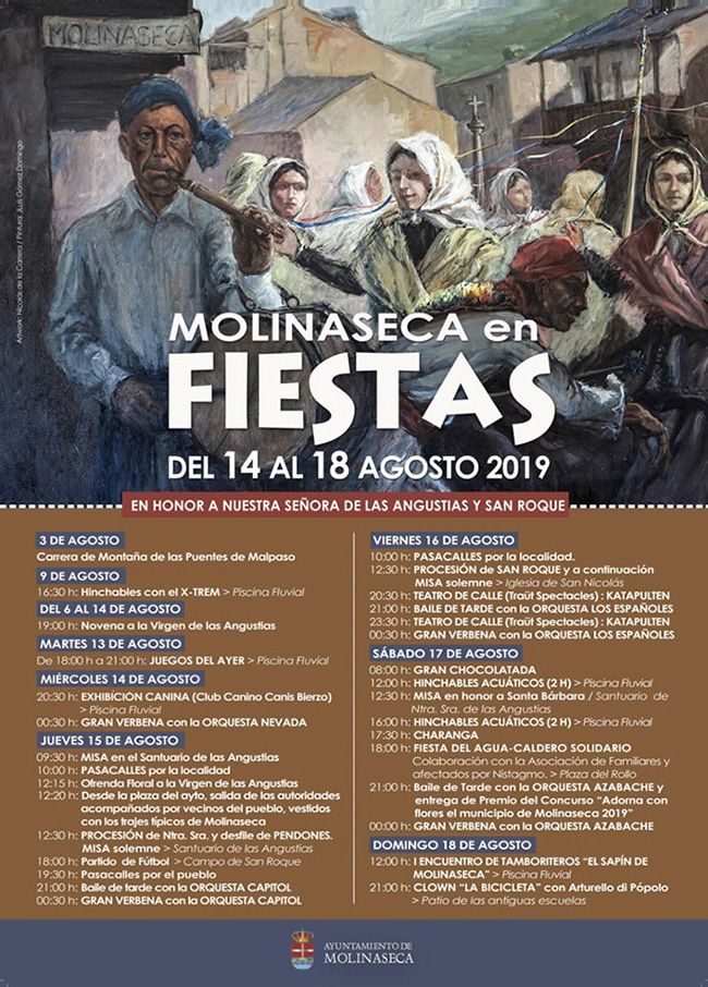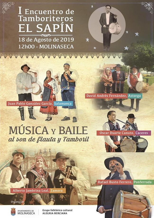 Además de hinchables, pasacalles, tardes y noches de verbena, gran chocolatada, teatro o fútbol, las fiestas de Molinaseca contarán este 2019 con el Primer Encuentro de Tamboriteros 'El Sapín de Molinaseca', que se celebrará en la piscina fluvial. Será el domingo 18 a las 12.00 horas y contará con la presencia de músicos de Ponferrada, Astorga, Zamora, Salamanca y Cáceres.