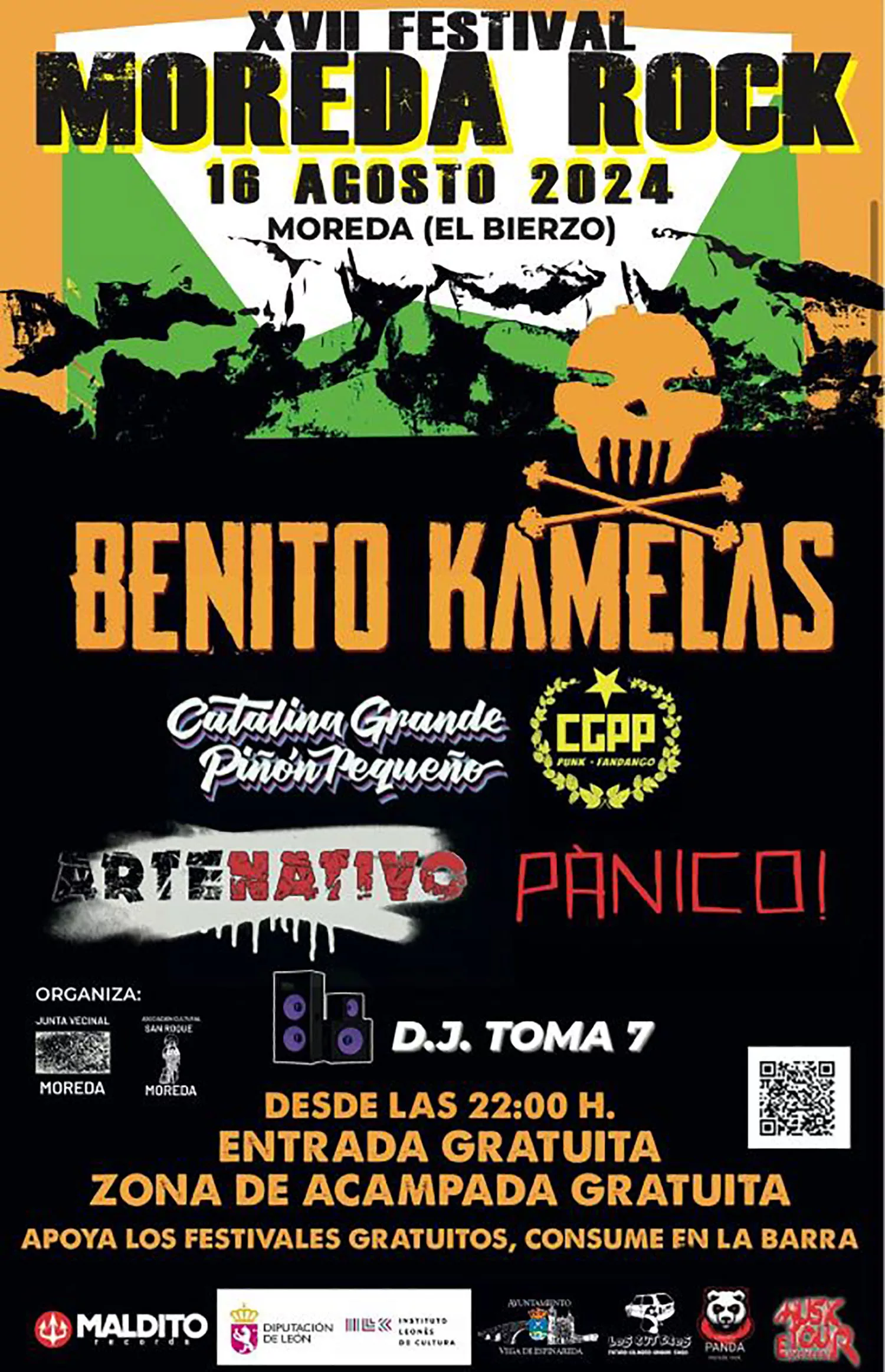 El Festival Moreda Rock, que acoge la localidad de Moreda del Bierzo, vuelve con fuerza en su XVII edición el próximo 16 de agosto con Benito Kamelas como cabeza de cartel, acompañado por los leoneses Catalina Grande Piñón Pequeño.