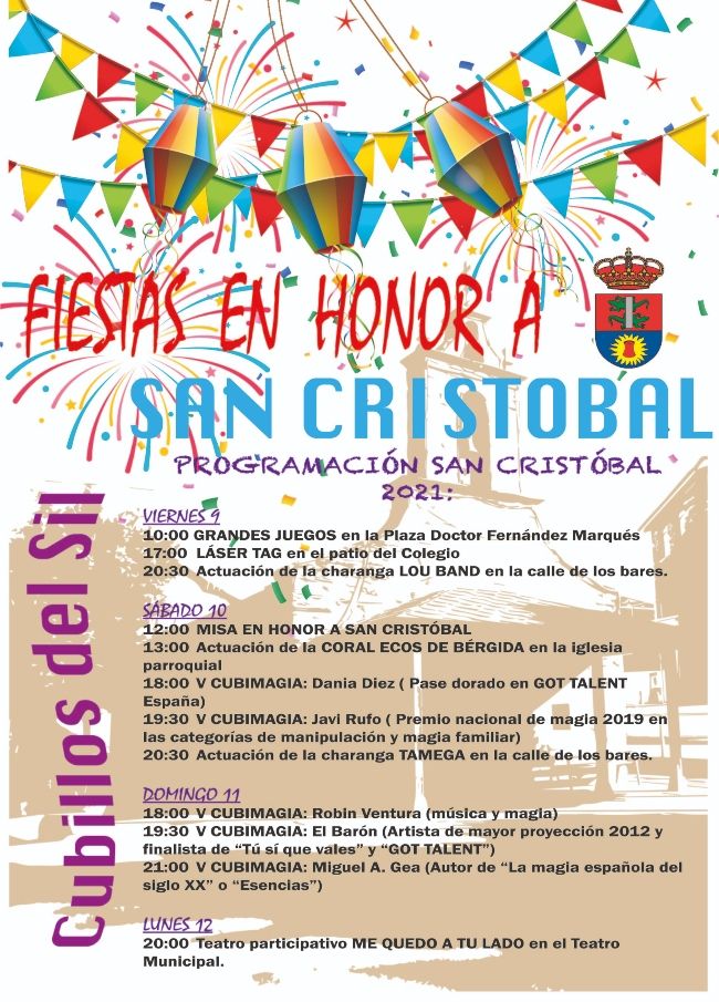 El Ayuntamiento de Cubillos del Sil ha presentado el cartel de las fiestas patronales en honor a San Cristóbal, con una programación adaptada a las circunstancias de la pandemia que se extenderá desde el viernes 9 de julio hasta el lunes 12.