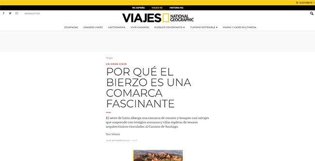 Foto: National GeographicLa prestigiosa revista National Geographic ha dedicado un reportaje en su sección de viajes al Bierzo bajo el título "Por qué El Bierzo es una comarca fascinante". Firmado por Xan Sabarís, el artículo hace un recorrido por las virtudes de la tierra berciana siendo un excelente escaparate turístico fuera de nuestras fronteras, además de todo un orgullo para los bercianos.