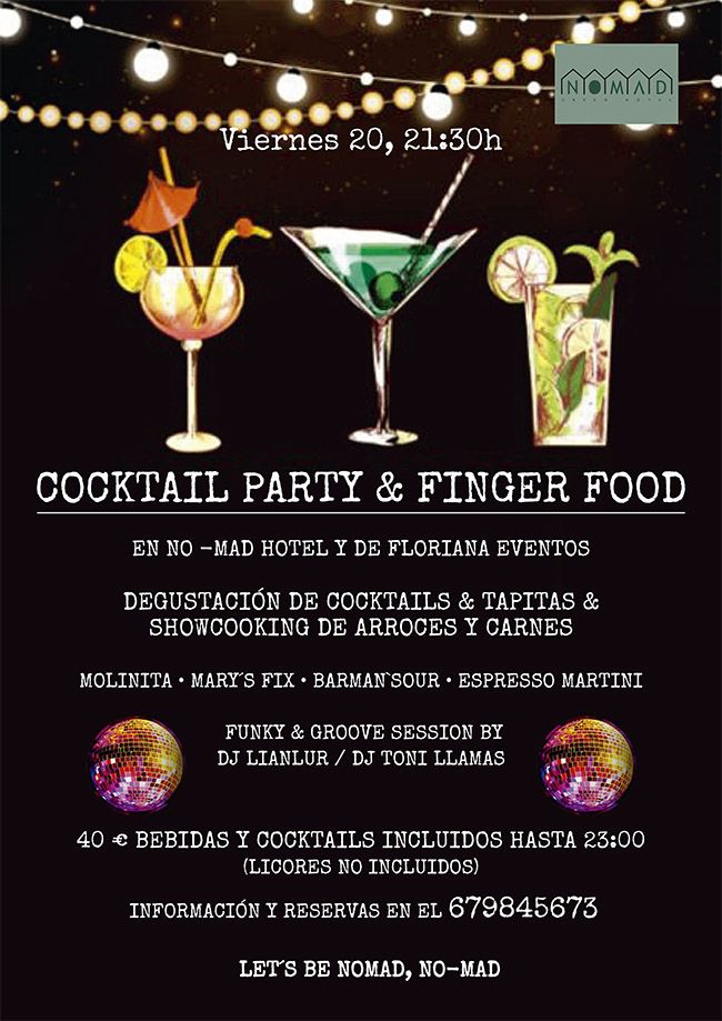 Si te perdiste la última fiesta en el Hotel No-Mad y el Restaurante de Floriana de Molinaseca, el próximo viernes tendrás una nueva oportunidad con la 'Cocktail party & finger food', fiesta de cócteles y comida para comer con las manos, un festival para chuparse los dedos, literalmente.