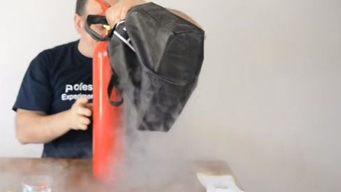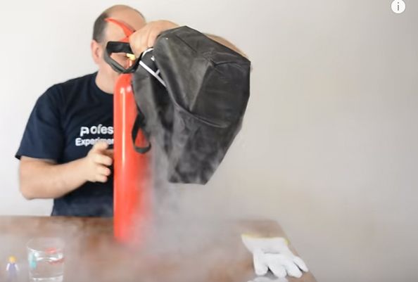 Explicación del experimento: En el experimento crearemos hielo seco CO2 dióxido de carbono sólido con un extintor de CO2 , y una bolsa de tela .