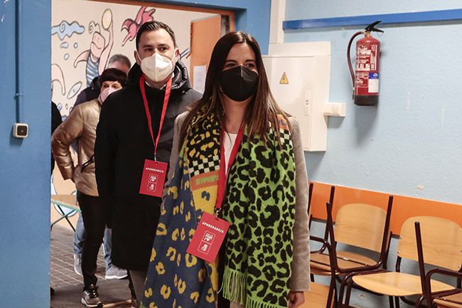 La cabeza de lista del PSOE por León a las Cortes, Nuria Rubio, vota en el Colegio Luis Vives de la capital leonesa