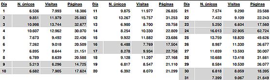 LECTORES ÚNICOS Y VISITAS POR DÍA DE ELBIERZODIGITAL