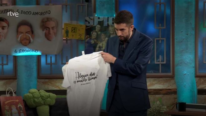 Después de unos segundos de despiste en los que Broncano preguntaba quién era la chica, Sergio Bezos explicaba la situación del Bierzo y la falta de oncólogos en el hospital comarcal. Broncano recogía el guante, o más bien la camiseta, y la dejaba junto al resto de regalos que traen los invitados que acuden al programa.