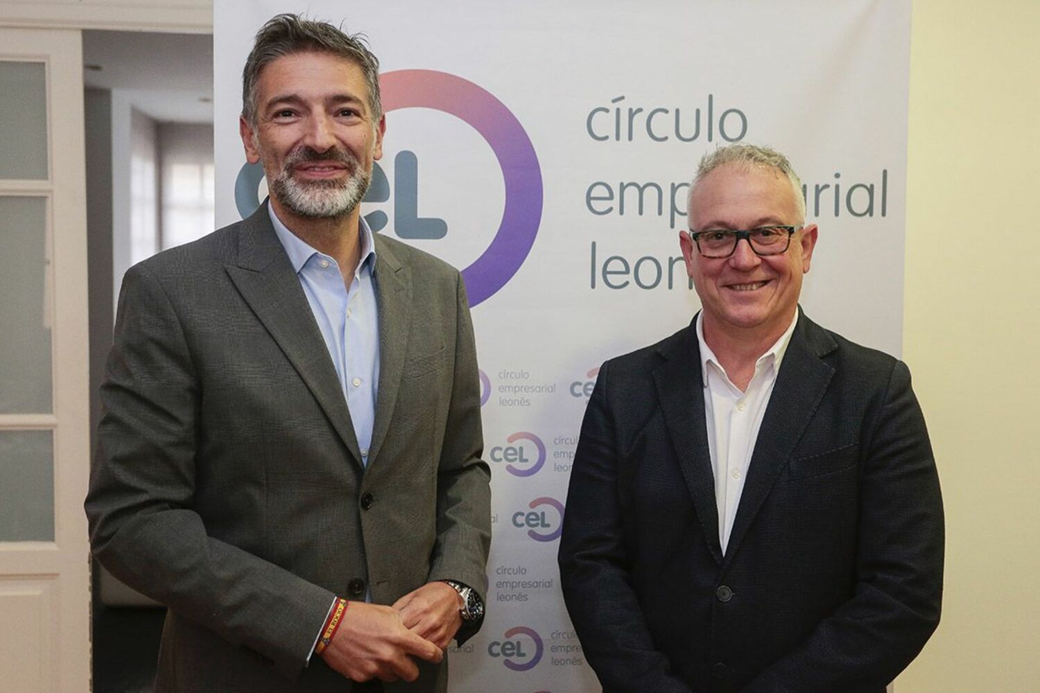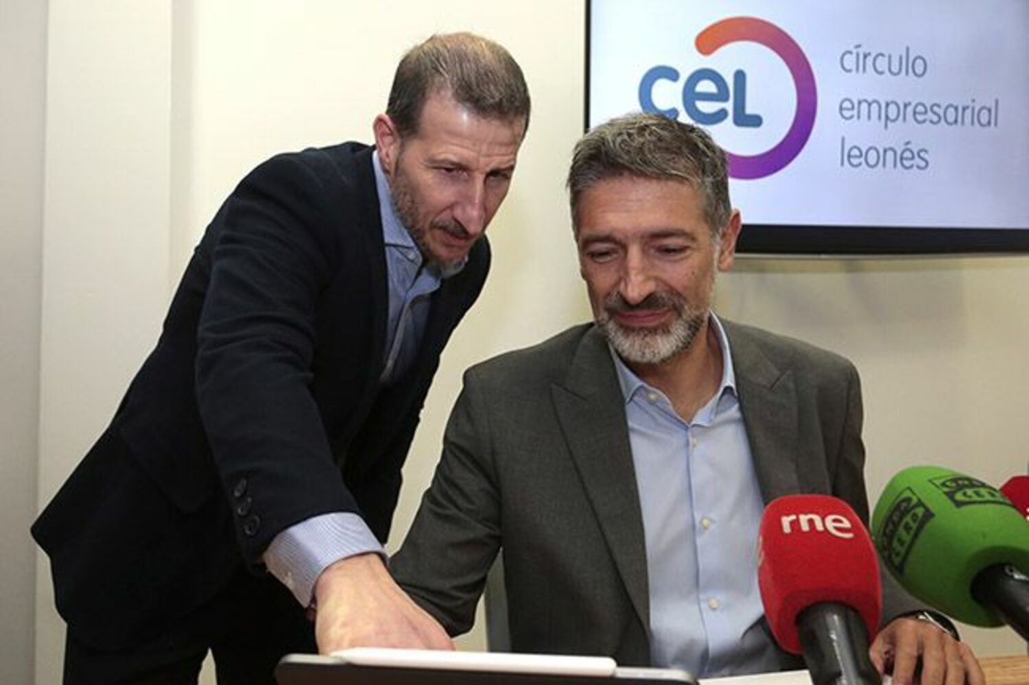 El presidente del Círculo Empresarial Leonés, Julio César Álvarez, y el secretario general, Nicesio Álvarez, anuncian al premiado con el galardón Círculo de Oro 2022