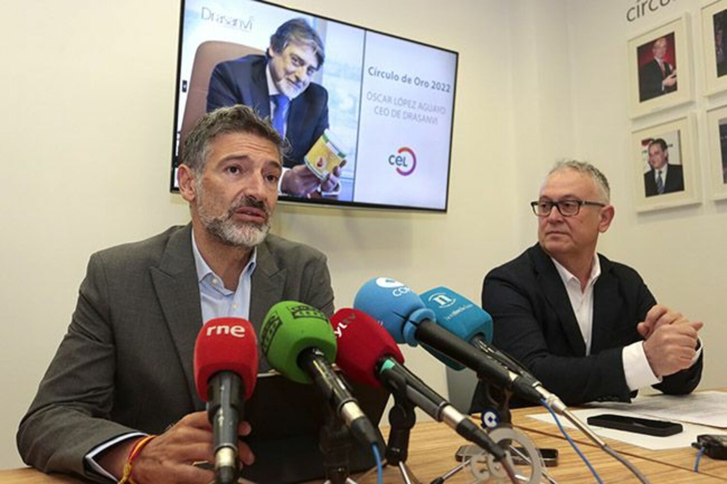 El presidente del Círculo Empresarial Leonés, Julio César Álvarez, y el secretario general, Nicesio Álvarez, anuncian al premiado con el galardón Círculo de Oro 2022El CEO de Drasanvi, Óscar López Aguayo, es el galardonado en la edición 2022 del Premio Círculo de Oro, otorgada por el Círculo Empresarial Leonés, cuyo presidente, Julio César Álvarez, dio hoy a conocer la decisión de la junta directiva acordada por unanimidad para reconocer “su extraordinaria trayectoria empresarial de tres décadas al frente de una gran compañía, que se ha posicionado y consolidado como referente nacional en el sector de la salud, la belleza y el bienestar, con más de 200 trabajadores y una facturación cercana a los 23 millones de euros”.