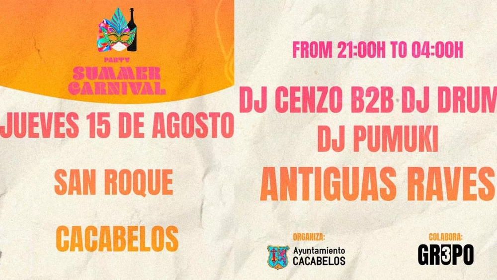 El Ayuntamiento de Cacabelos presenta el 'Party Summer Carnival' el próximo jueves 15 de agosto para celebrar las fiestas del barrio de San Roque. Destaca la participación con el festival musical Monoloco Fest, McDonald´s León, la Moncloa de San Lázaro y el bar San Roque como patrocinadores. También contará con la colaboración de Grupo 3.