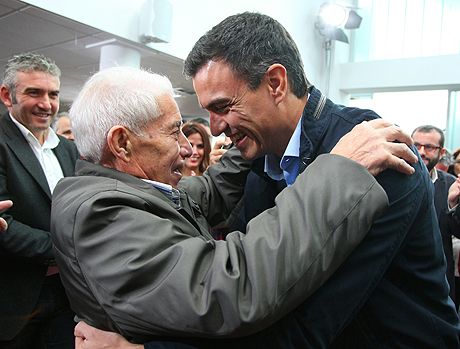 000_0100 El veterano socialista Antonio Fernández junto al secretario general del partido, Pedro Sánchez / Víctor Alón