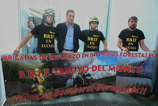 Al término del acto, Pedro Sánchez aprovechó su visita a El Bierzo para mantener un encuentro con el presidente del Consejo Comarcal y los alcaldes de municipios mineros.