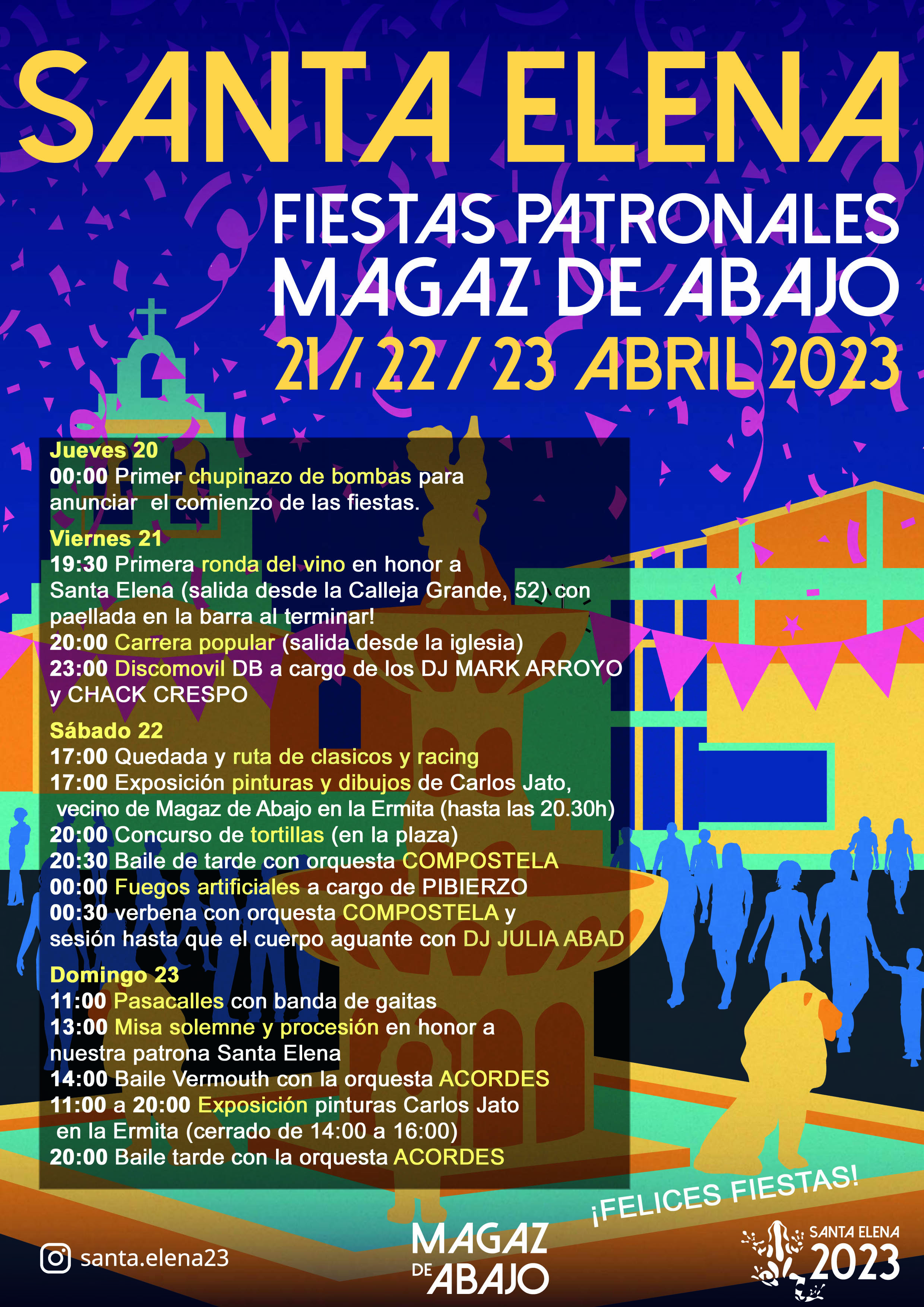 21, 22 y 23 de abril. Desde el ayuntamiento de Camponaraya desean felices fiestas a todas las personas de Magaz de Abajo y foráneos que se acerquen a disfrutar de una de las primeras fiestas del año en El Bierzo.