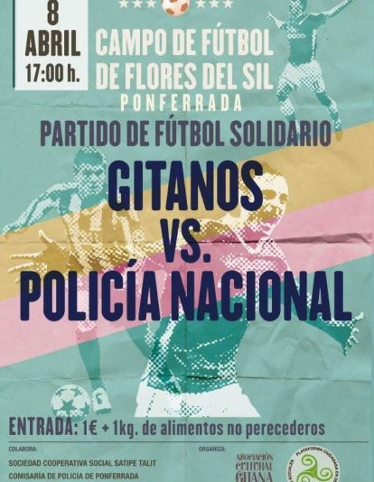 Gitanos y Policía Nacional se enfrentan el próximo 8 de abril en un encuentro de fútbol amistoso y benéfico que se celebrará desde las 17h. en el Campo de Fútbol de Flores del Sil.