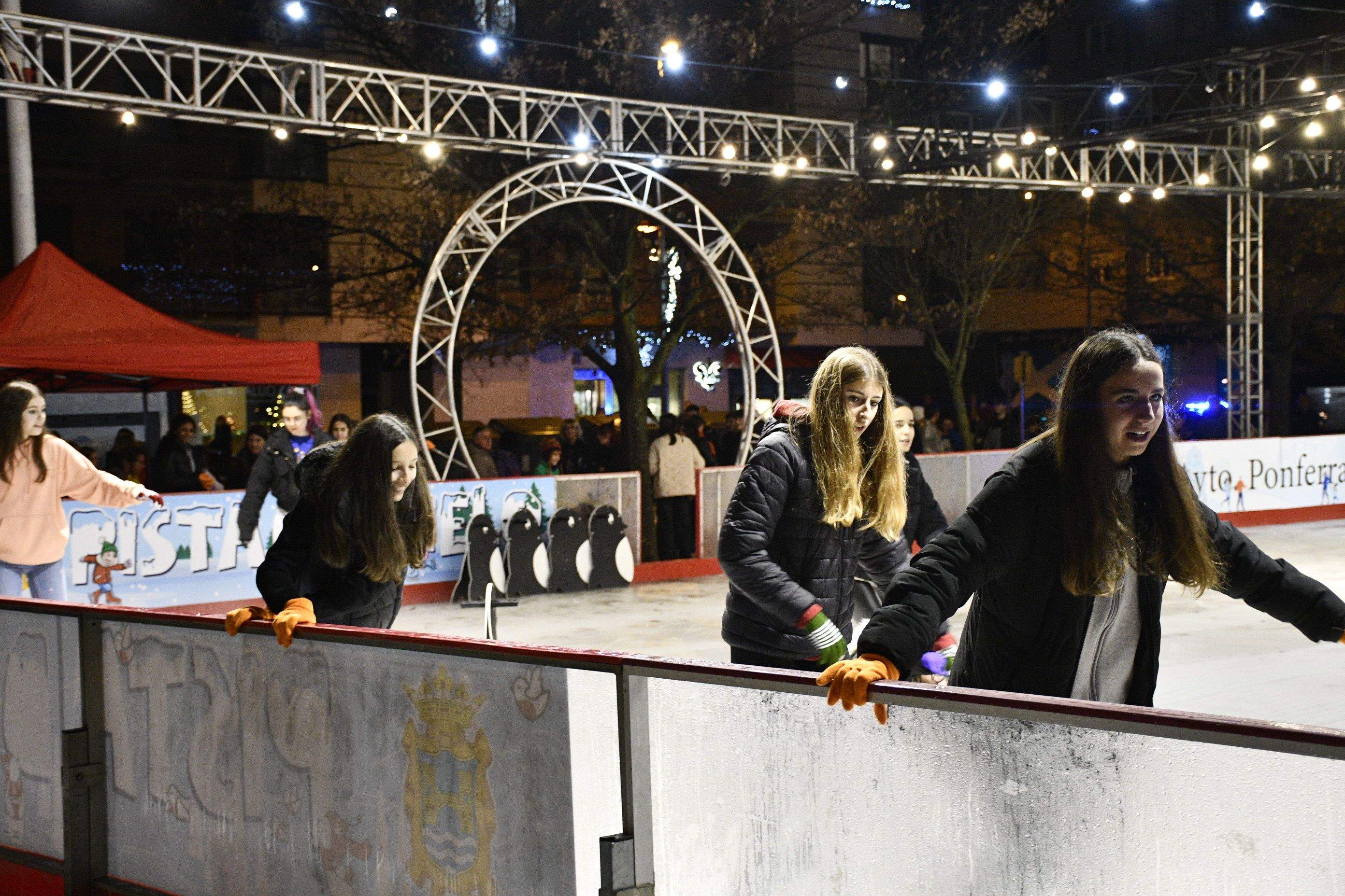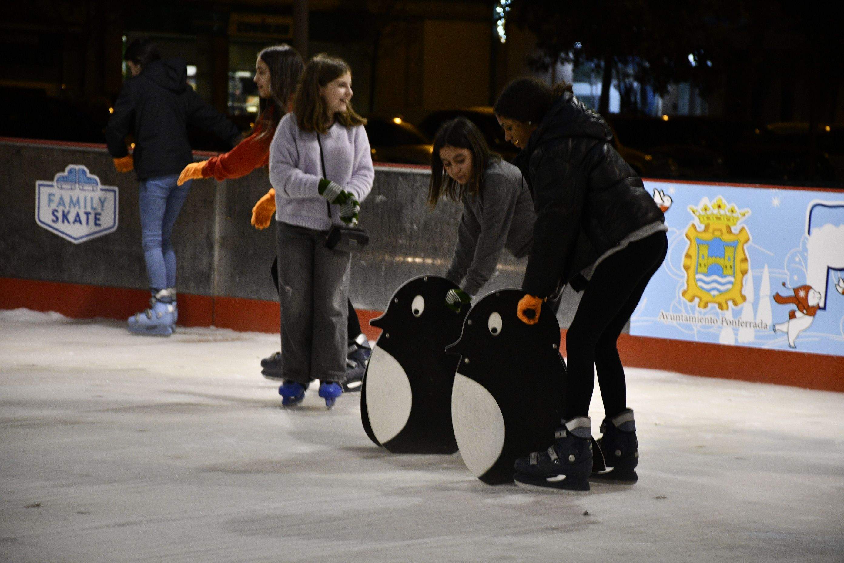Tras el contratiempo con la inauguración de la pista de hielo, que tenía que abrir sus puertas el pasado miércoles, esta tarde los ponferradinos sí han podido disfrutar de esta atracción navideña. En la inauguración han estado presente la edil de Fiestas y Juventud, Lorena Valle, el alcalde, Olegario Ramón, y otros representantes de la corporación municipal.