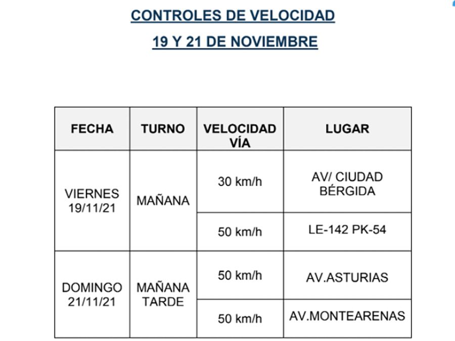 Así, este viernes y domingo habrá radares para vigilar si los vehículos circulan tanto a 30 como a 50 km/h. Se encontrarán en Avenida Ciudad Bérgica, Avenida Asturias y Avenida de Montearenas. Cabe recordar que el Ayuntamiento de Ponferrada facilitaba esta información tras comenzar a sancionar en las ‘nuevas vías a 30′ y 50 km/h . En septiembre tuvo lugar una fase de control y sanción, y ahora se retoma la campaña especial de radares a este fin.