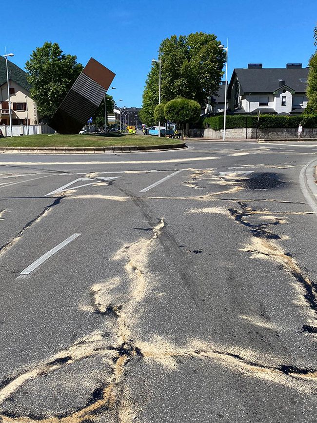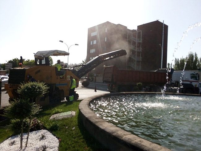 En la intersección de la avenida de la Libertad con Camino de Santiago (glorieta de la Pizarra) se han acometido trabajos de reparación de grietas, mediante la colocación de una geomalla de poliéster y posterior sellado de betún y arena, para concluir con las labores de señalización horizontal.