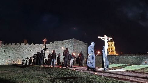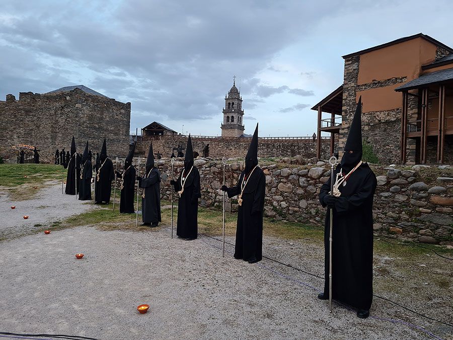 Al igual que ocurriera la pasada edición, esta Semana Santa y todos sus actos se han visto alterados y han tenido que adaptarse a la pandemia para retomarse al menos. El Vía Crucis Penitencial al Castillo marcaba el Lunes Santo con la unión del Cristo de la Esperanza y del Cristo de la Fortaleza en el patio de armas del Castillo de los Templarios. Habitualmente, tras las 14 estaciones de penitencia que marcan cada uno de los momentos de la Pasión de Cristo partiendo de la Iglesia de San Andrés, la procesión culminaba en el interior de la fortaleza, aunque en esta ocasión el acto se ha limitado a una retransmisión en directo desde el interior del castillo.