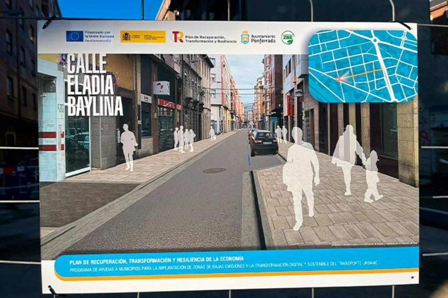 Simulación de cómo quedará la calle Eladia Baylina tras las obras de mejoraPonferrada continúa con las mejoras derivadas de la implantación del proyecto 'Ponferrada 4.0 Aire limpio y Calidad de Vida', estrechamente ligado a la Zona de Bajas Emisiones. En este caso, el regidor, Olegario Ramón, ha presentado las actuaciones que se están llevando a cabo en la calle Navaliegos, centradas principalmente en el aumento de las aceras y la reducción de la vía.