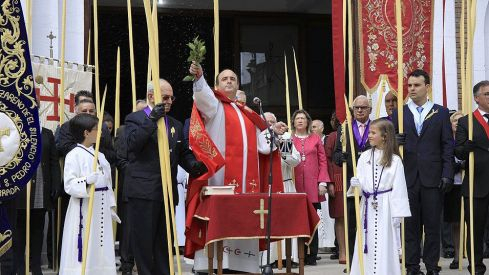 Amenazaba lluvia pero finalmente el cielo dejó bendecir las palmas y procesionar el paso popular conocido como la Borriquilla, en el Domingo de Ramos.