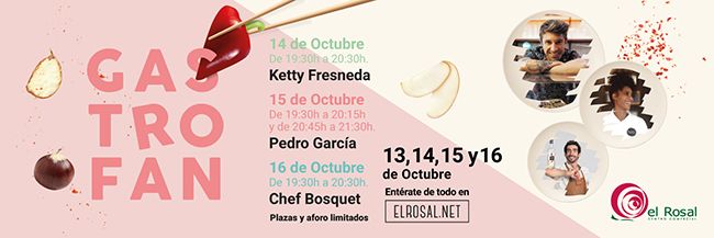 El Centro Comercial El Rosal, propiedad de Lar España Real Estate Socimi y gestionado por Grupo Lar a través de Gentalia, da el pistoletazo de salida a GastroFan, un evento gastronómico que comienza este miércoles y durará hasta el sábado 16 de octubre. Grandes estrellas como el Chef Bosquet, Ketty Fresneda y Pedro García, estarán en la capital de El Bierzo impartiendo diferentes talleres y showcookings.