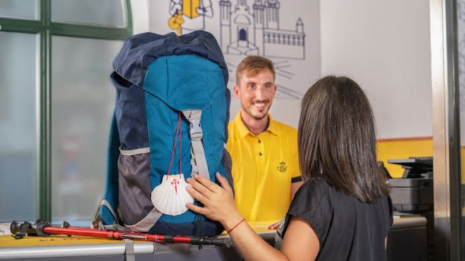 Andando o en bici, Correos ofrece distintos servicios de transporte de su equipaje mientras hacen los distintos caminos o, posteriormente, cuando regresan a sus casas dentro y fuera del territorio español, y mandan sus pertenencias desde Compostela.