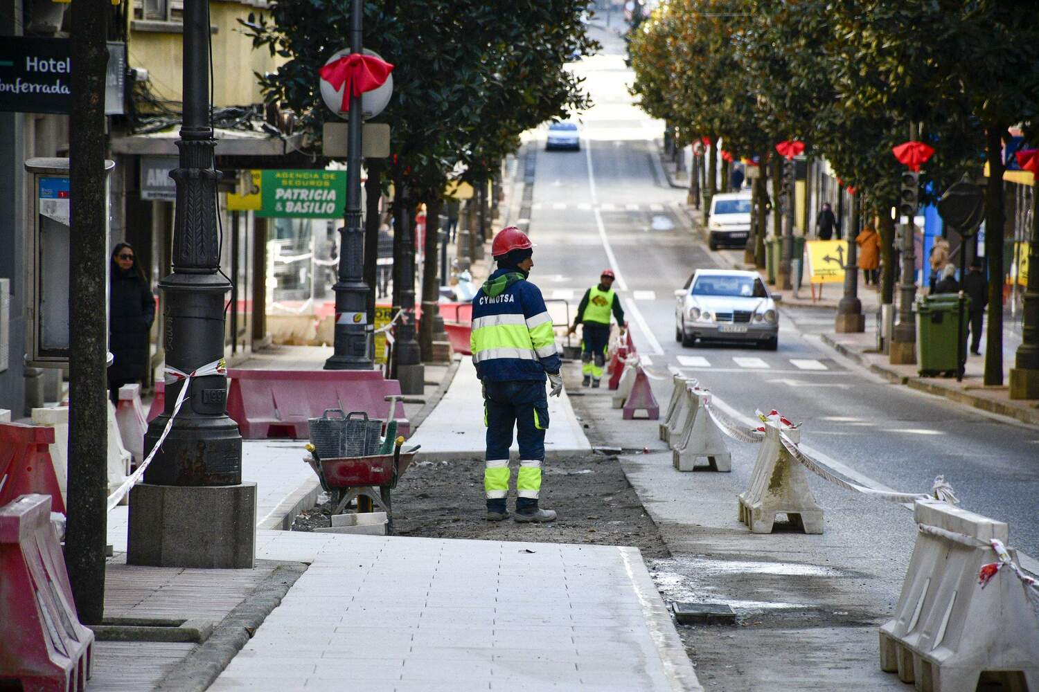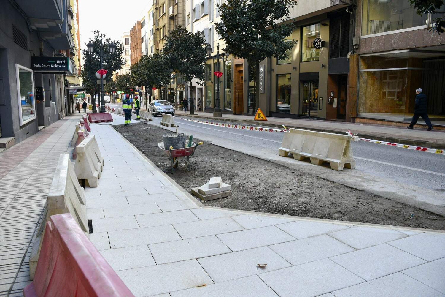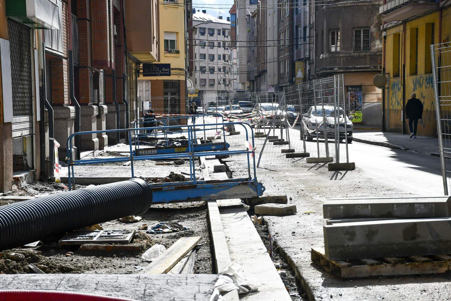 Únicamente se van a mantener las canalizaciones del gas, renovadas recientemente y en buen estado, el resto se va a sustituir. «Se van a sustituir las redes de saneamiento, excepto unos 80 metros reparados hace poco; las redes de abastecimiento; las redes de comunicaciones, que ahora mismo están todas por las fachadas, se va a dejar la preinstalación para que las empresas puedan soterrarlas; se va a renovar el alumbrado público, que irá soterrado, y se va a establecer un alumbrado en catenaria, algo novedoso y muy llamativo», aseguraba el regidor ponferradino.