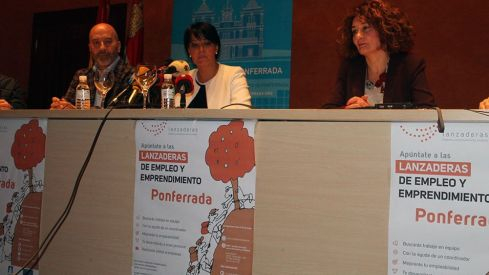 Joan Cruz, Rosa Luna y Gloria Fernández Merayo, durante la presentación.Desde este jueves y hasta el próximo 24 de mayo, todos los ciudadanos de entre 18 y 59 años que estén buscando trabajo en la Comarca podrán solicitar su participación en la I Lanzadera de Empleo que se desarrollará en Ponferrada a lo largo de cinco meses "para conseguir nuevas y más útiles herramientas sociales, psicológicas y de imagen, entre otras cosas, que les ayuden a alcanzar sus objetivos profesionales".