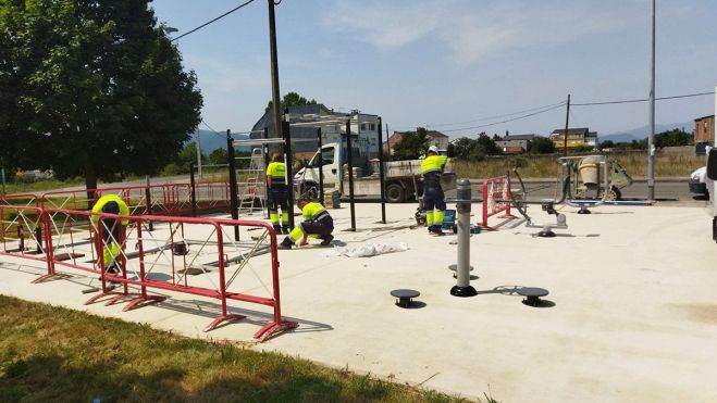 En estos momentos los trabajos que se están acometiendo en el parque de La Placa están muy avanzados, con los elementos deportivos y de calistenia ya instalados y está únicamente pendiente la colocación del suelo sintético, que es estrictamente necesario para evitar lesiones graves en posibles caídas de los usuarios durante su ejercicio o prácticas deportivas.