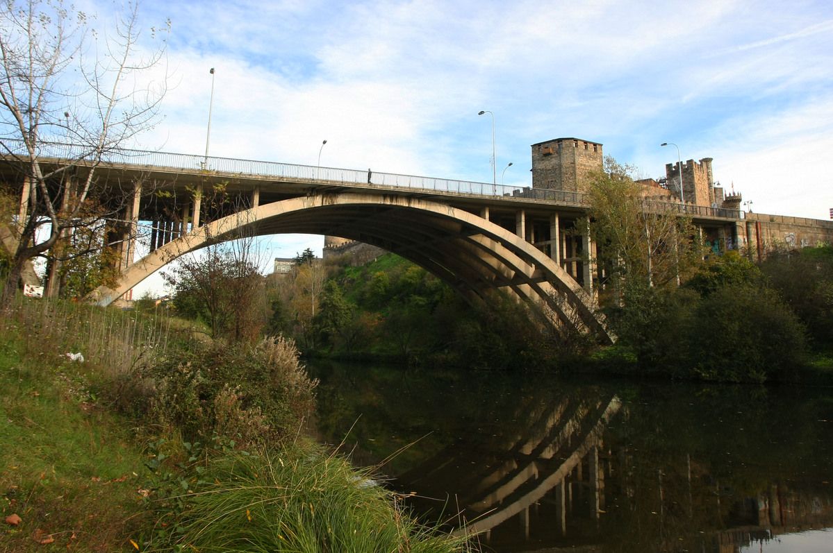 El puente García Ojeda es una construcción de hormigón de finales de los 60 y principios de los 70 del siglo XX. La estructura lleva el nombre del último alcalde predemocrático de Ponferrada, Luis García Ojeda, que fue el impulsor de esta importante infraestructura. Durante un tiempo se le llamó puente Nuevo, hasta que por iniciativa del también alcalde Celso López Gavela se aprobó el cambio del nombre del puente, dedicándoselo García Ojeda.