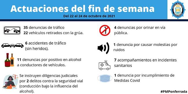 La Policía de Ponferrada, durante el turno de noche, localizaba un vehículo "circulando de forma anómala con riesgo de causar un accidente. Su conductor cuadruplica la tasa máxima de alcohol permitida, motivo por el cual se instruyen diligencias judiciales por un presunto delito contra la seguridad vial", según han confirmado a través del parte de incidencias de este fin de semana.